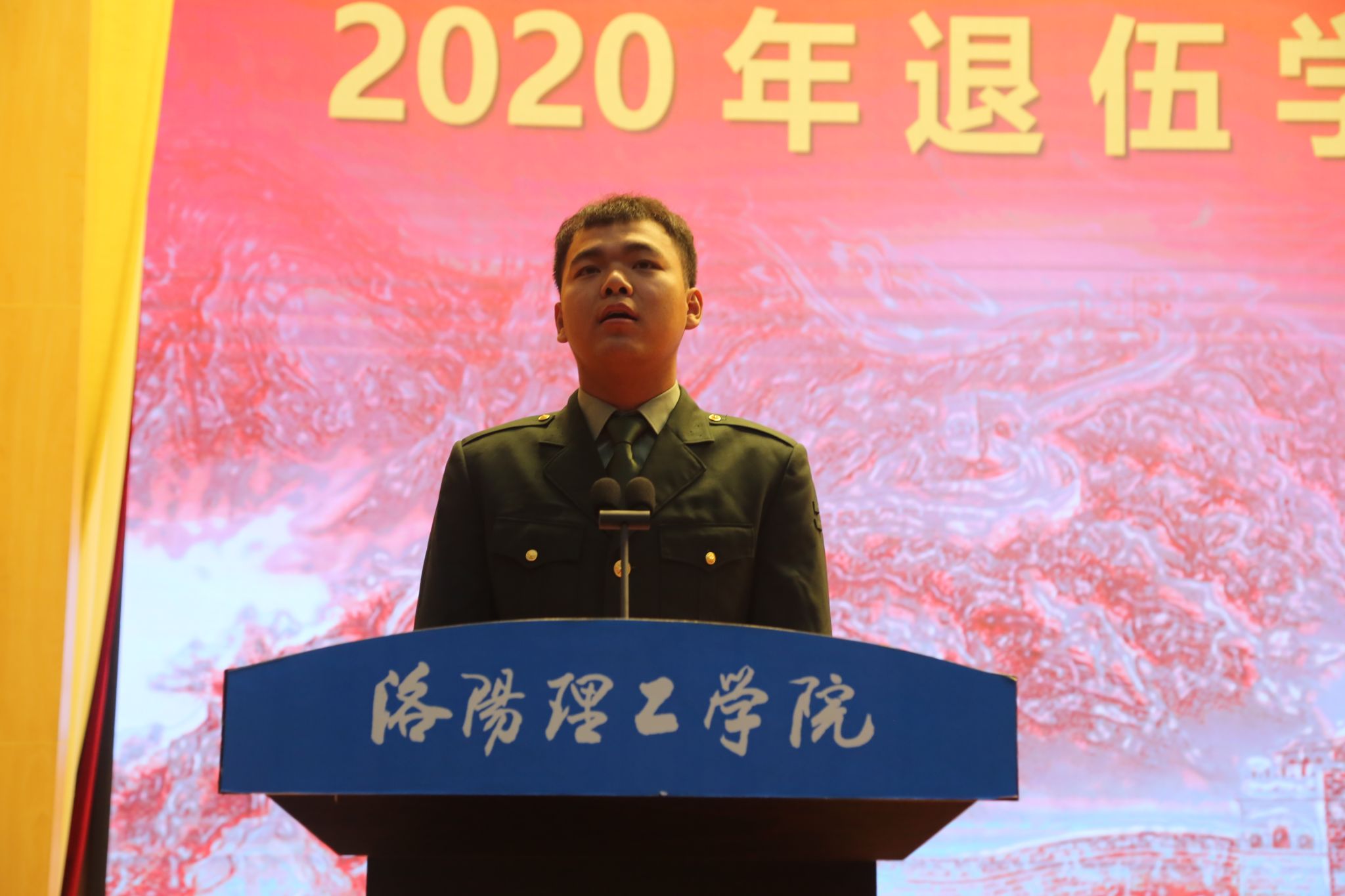 会议在国歌中拉开序幕,武装部老师宣读了2021年退役学生名单,观看了退役学生风采展示,为优秀退役大学生颁发了荣誉证书。2020年退役学生代表王旭杰和2021年退役学生代表张高阔分别发言。