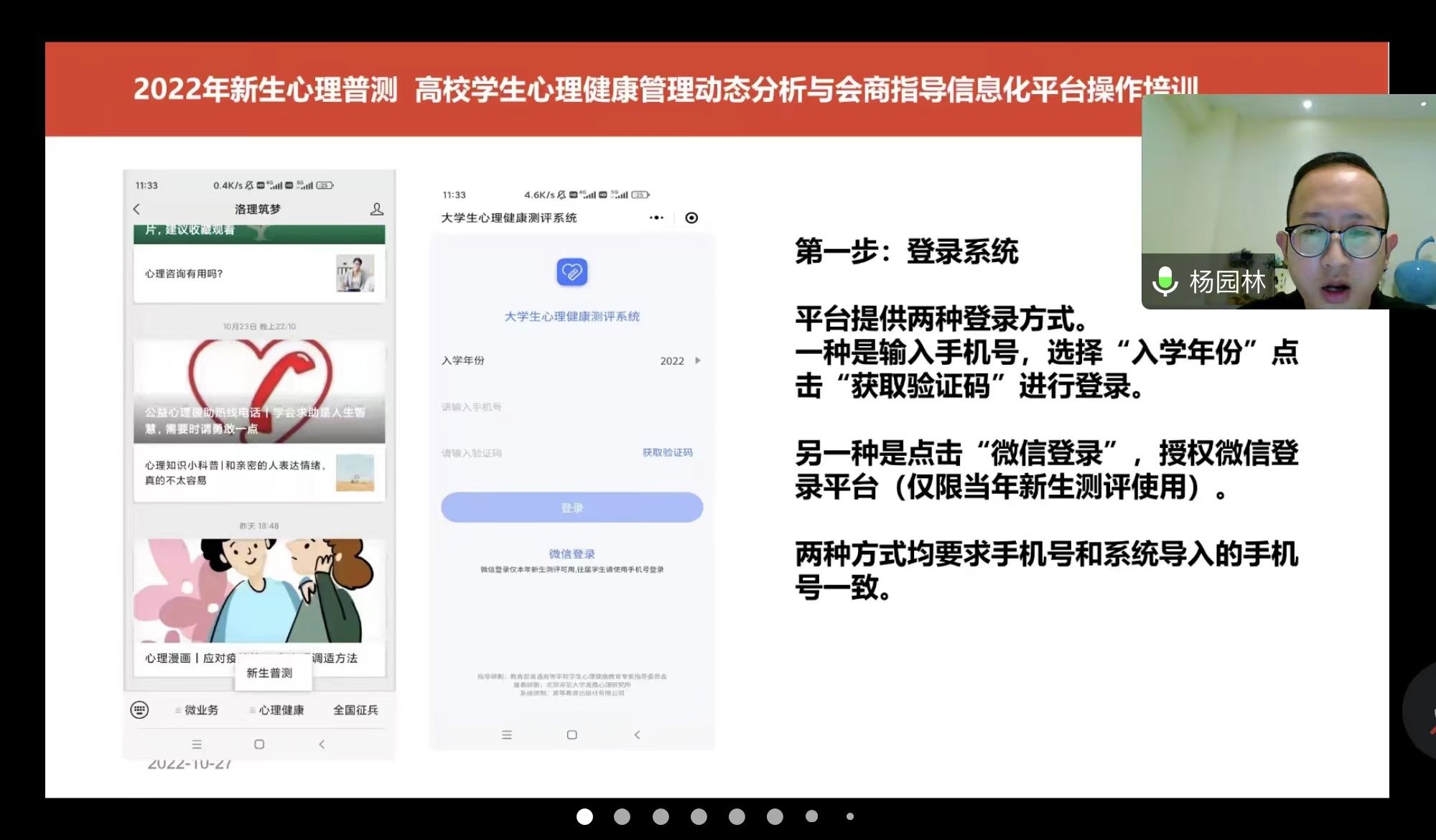 开展心理普测的具体时间与地点。接下来杨园林老师针对本年度心理普测使用的“中国大学生心理健康测评系统”展开了系统培训,分别讲解了学生账号与美高梅娱乐场
