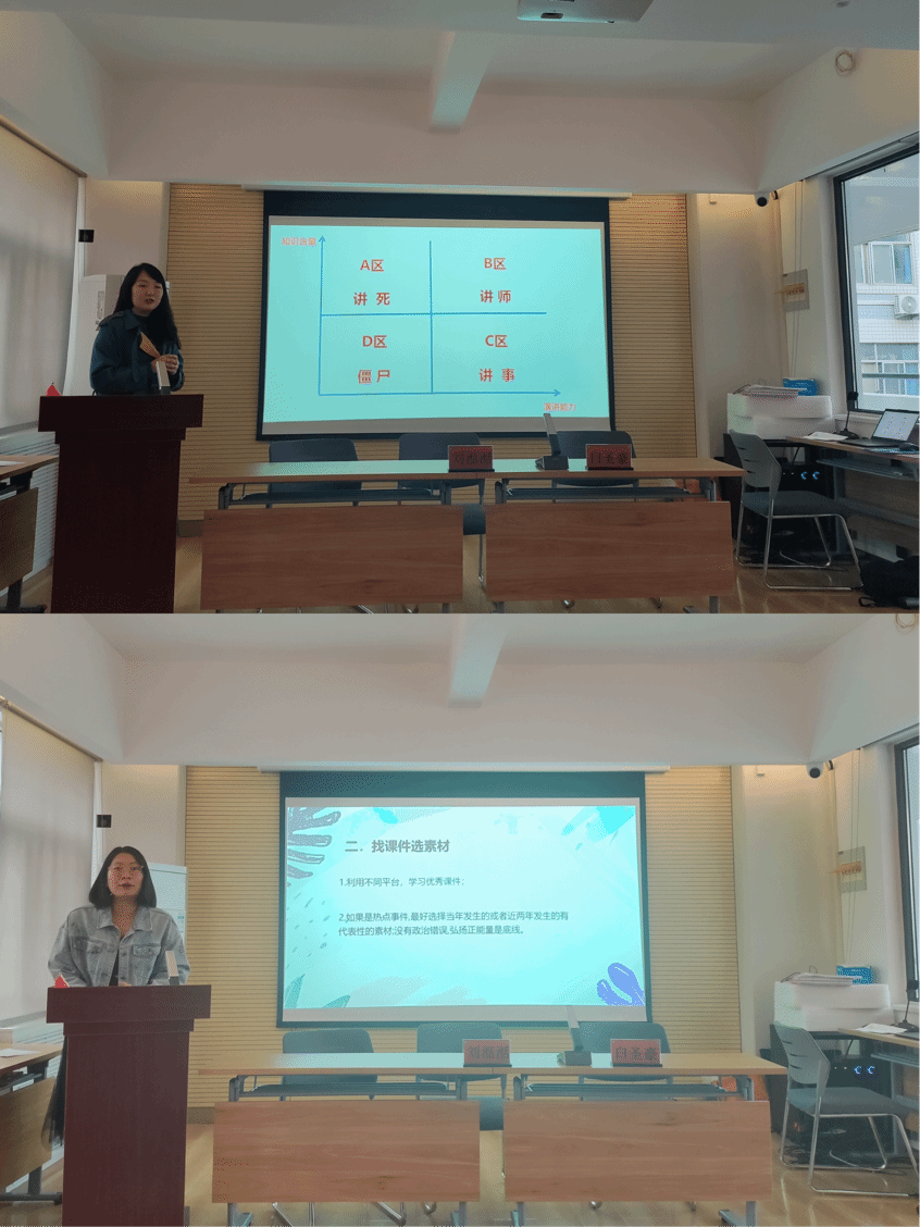 会上,赵亚苹老师还部署了本学期的课程教学工作:建议老师们在上课时组织多样化教学活动,增进学生之间关系的建立与熟悉;组织教学团队开展课程磨课、说课,为六月份的《大学生心理健康教育》优质课大赛做准备;定期组织教研室成员开展巡课,规范心理健康教育课程教学纪律;建立课程的“课程思政”教学视频库、编写课程教学讲义,构建多层次、立体化的教学资源体系;完善“课程思政”教学设计及考核评价体系等。