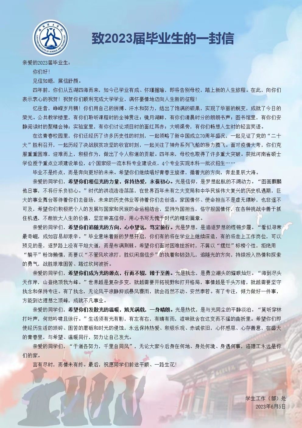 致2023届毕业生的一封信