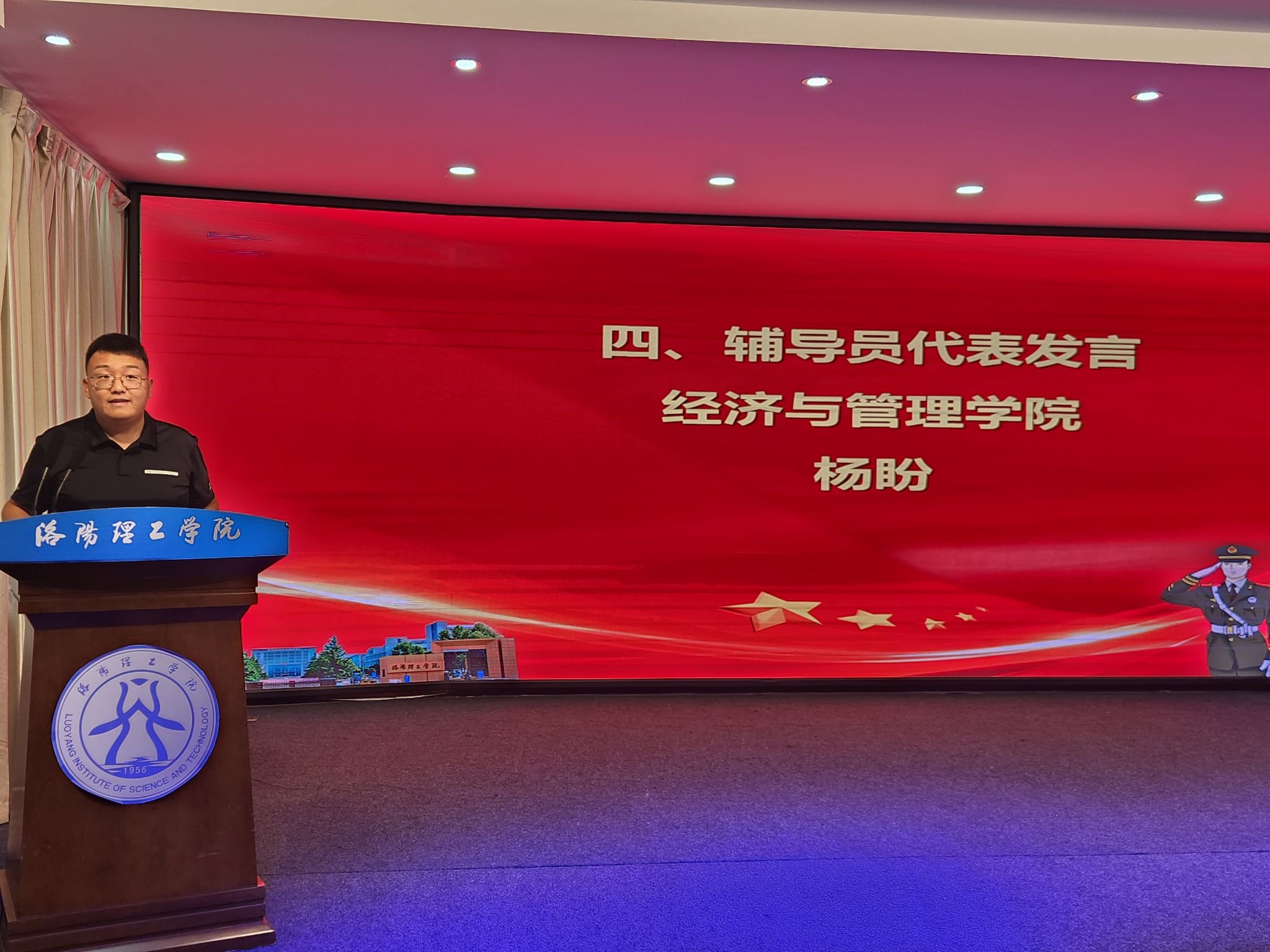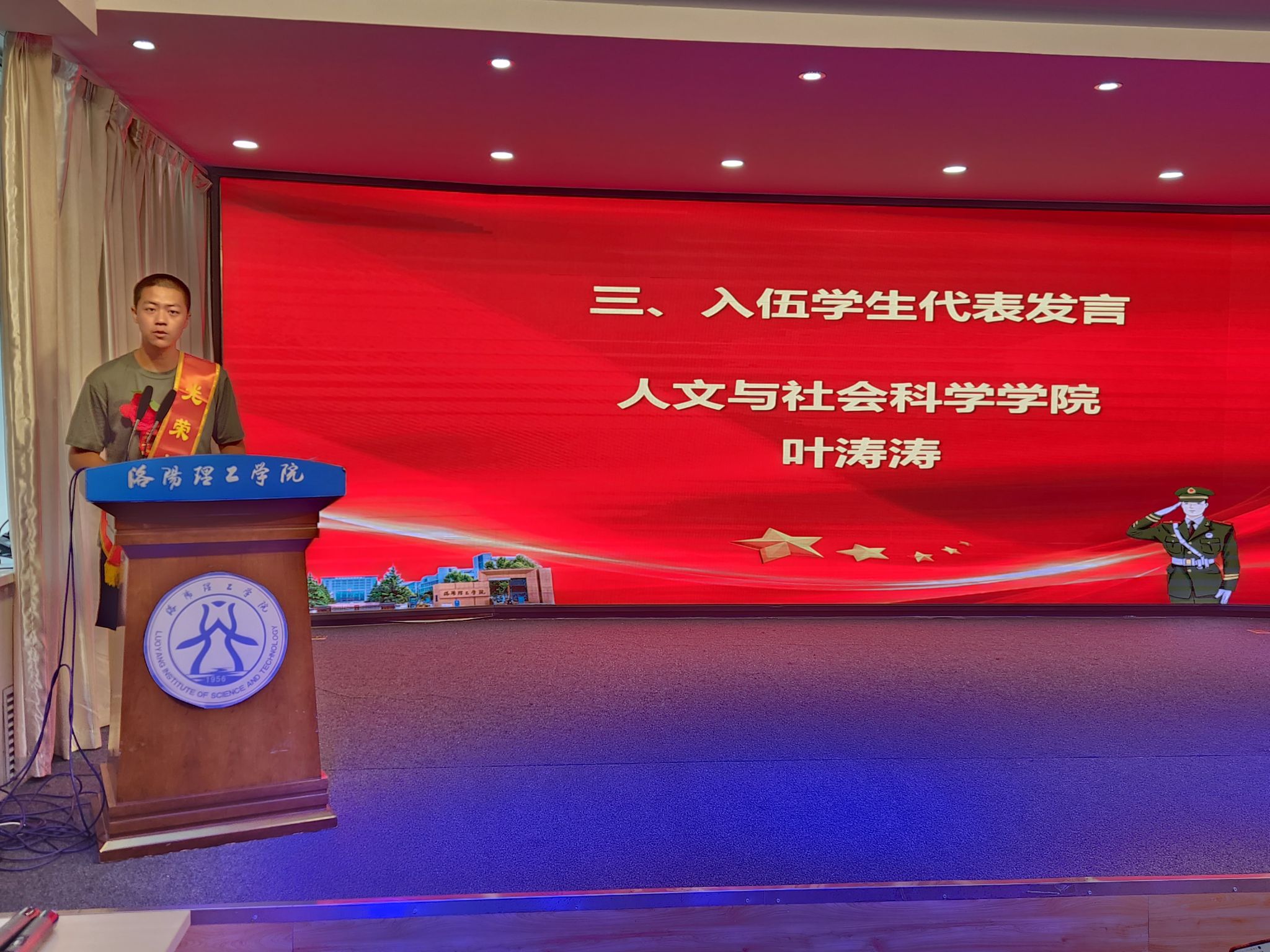 学生叶涛涛代表全体入伍新兵发言,经济与管理美高梅娱乐场