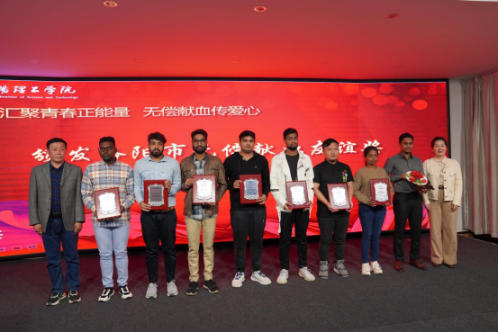 洛阳市卫健委、中心血站共同向留学生献血者代表颁发“洛阳市无偿献血友谊奖”