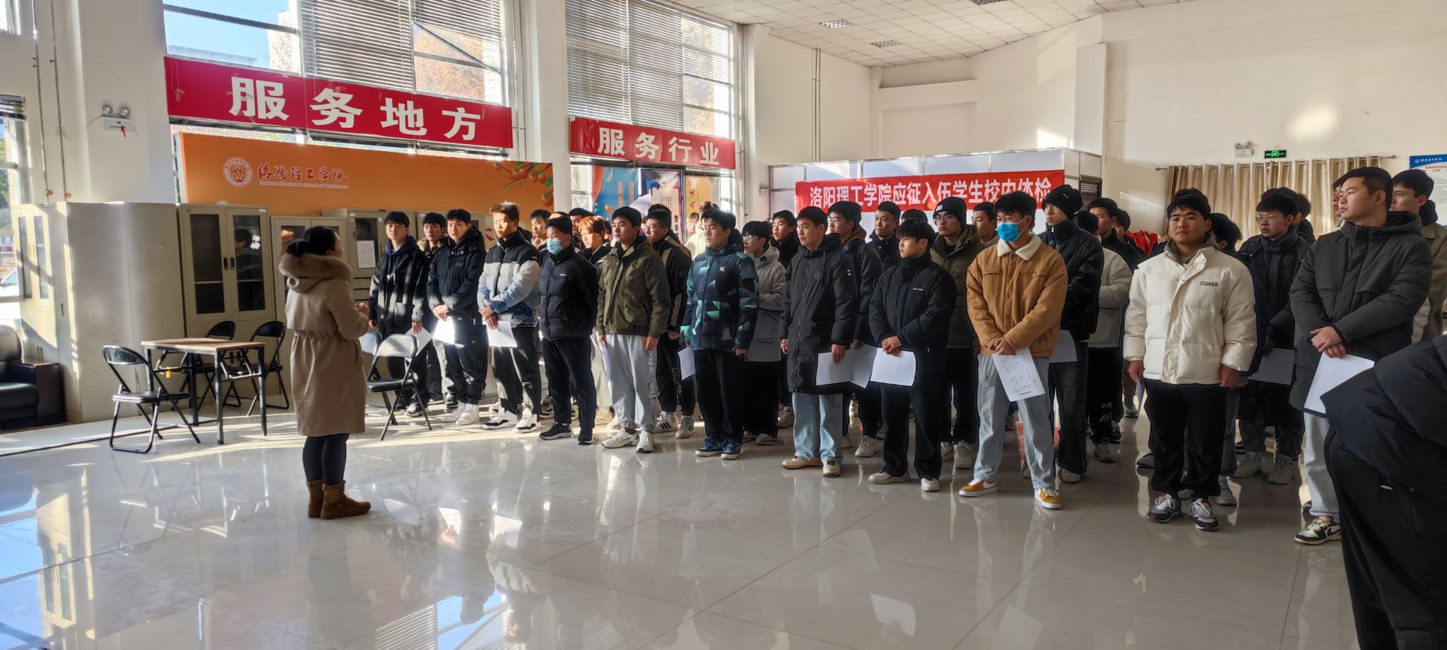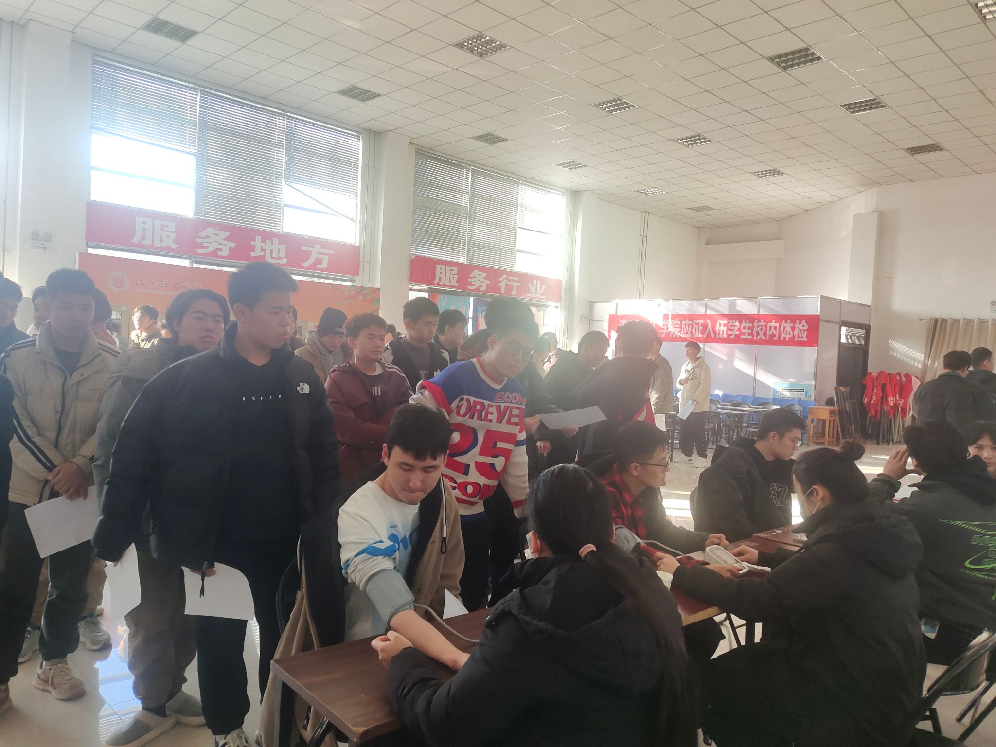 携笔从戎淬炼不悔青春,报效祖国成就精彩人生。体检是做好征兵工作的重要环节,是确保兵员质量的第一道关口。为推进2024年度征兵工作有序开展,12月21日,我校武装部联合校医院组织开展了春季应征入伍报名学生校内体检工作。体检项目主要包括身高、体重、血压、心率、视力、色觉、嗅觉、文身、伤疤和下蹲等常规检查。