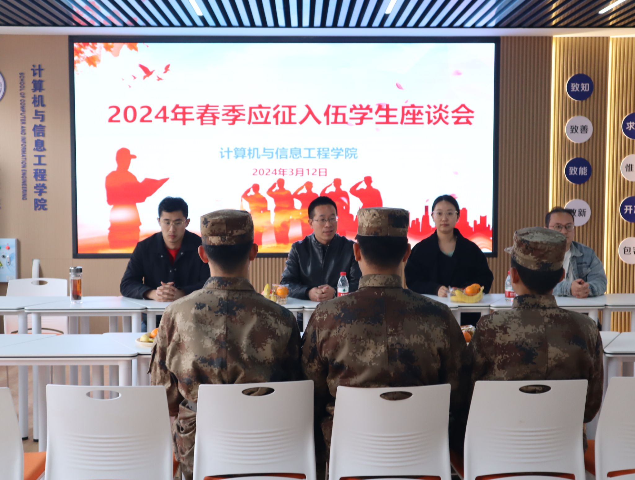 历年来高度重视征兵工作,始终把征兵工作作为落实国防教育的重要内容,把鼓励青年参军作为促进大学生成长成才的重要渠道。希望入伍的同志们在部队磨练意志、健全人格、强健体魄,胸怀大志,加强学习,练就过硬本领,服从命令,听从指挥,切实担负起维护祖国安全统和社会稳定的神圣使命,成为有用之材,在党和人民需要的地方建功立业。