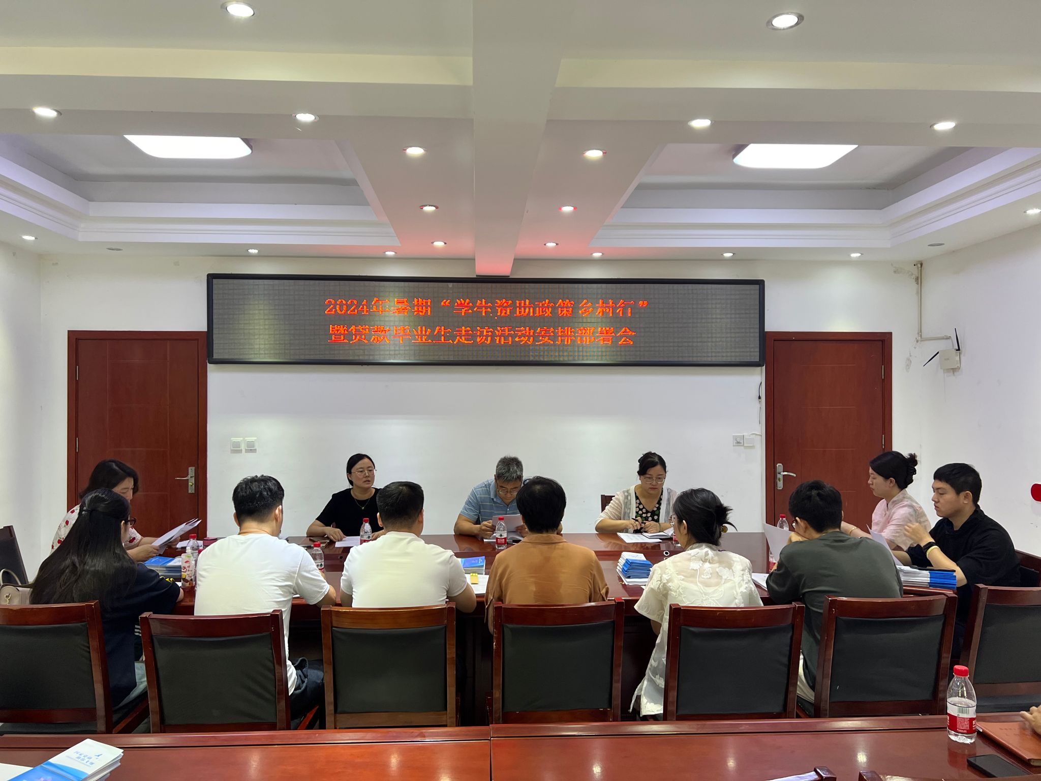 会上,张芸芸对2024年暑期“学生资助政策乡村行”暨贷款毕业生走访活动进行了具体安排。唐坚坚对2023年暑期贷款毕业生走访活动成效进行了通报。张恒就暑期活动期间安全问题和其他注意事项进行了强调。
