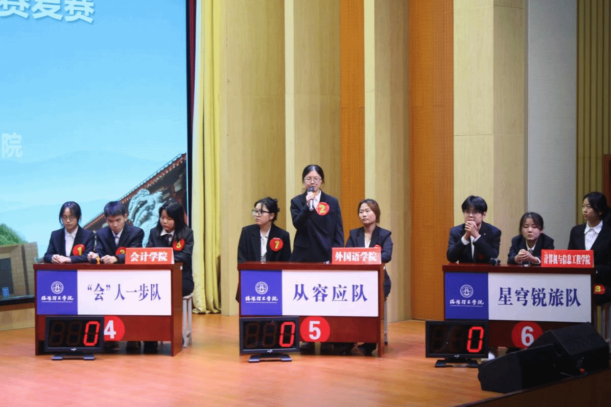 的代表队分为A、B两场进行比拼,通过必答题、选答题、抢答题、风险题和加时赛等环节,评选出6支复赛优胜队参加最后的决赛。赛场上,参赛队员们精神饱满、声音洪亮,他们凭借着丰富的知识储备、精湛的答题技巧、团结合作的精神及临场应变的能力,赢得了在场观众的阵阵掌声,展现出了当代青年积极向上、拼搏奋进的精神风貌。经过激烈的角逐,土木工程美高梅娱乐场