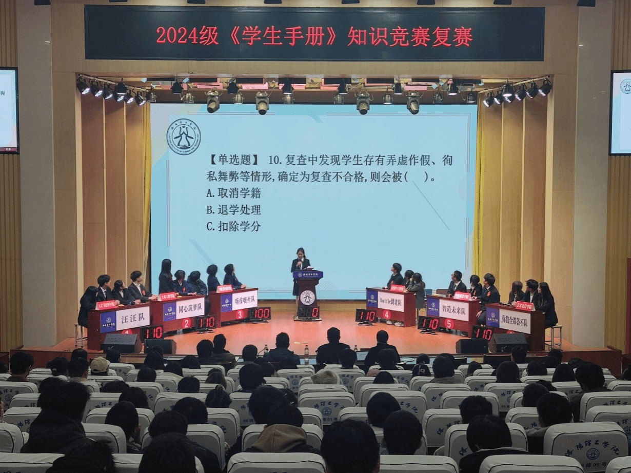 于12月12日在王城校区图书信息中心报告厅举办党的二十届三中全会精神暨2024级《学生手册》知识竞赛复赛。
