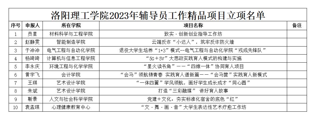 2023年辅导员工作精品项目立项名单