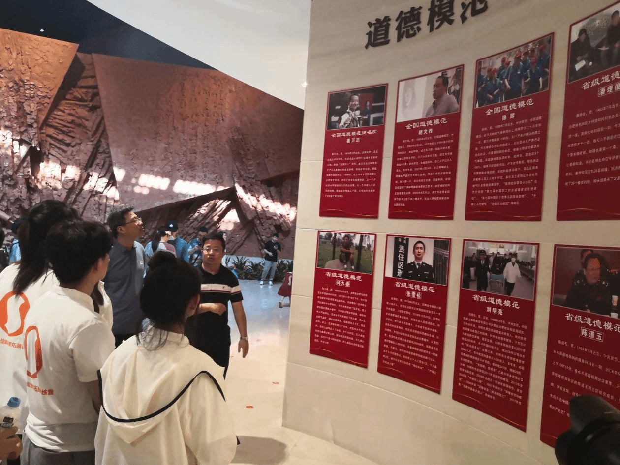 在渡江战役纪念馆道德模范宣传墙边,机关第二党支部开展一起瞻仰学习了模范英雄们的光辉事迹。