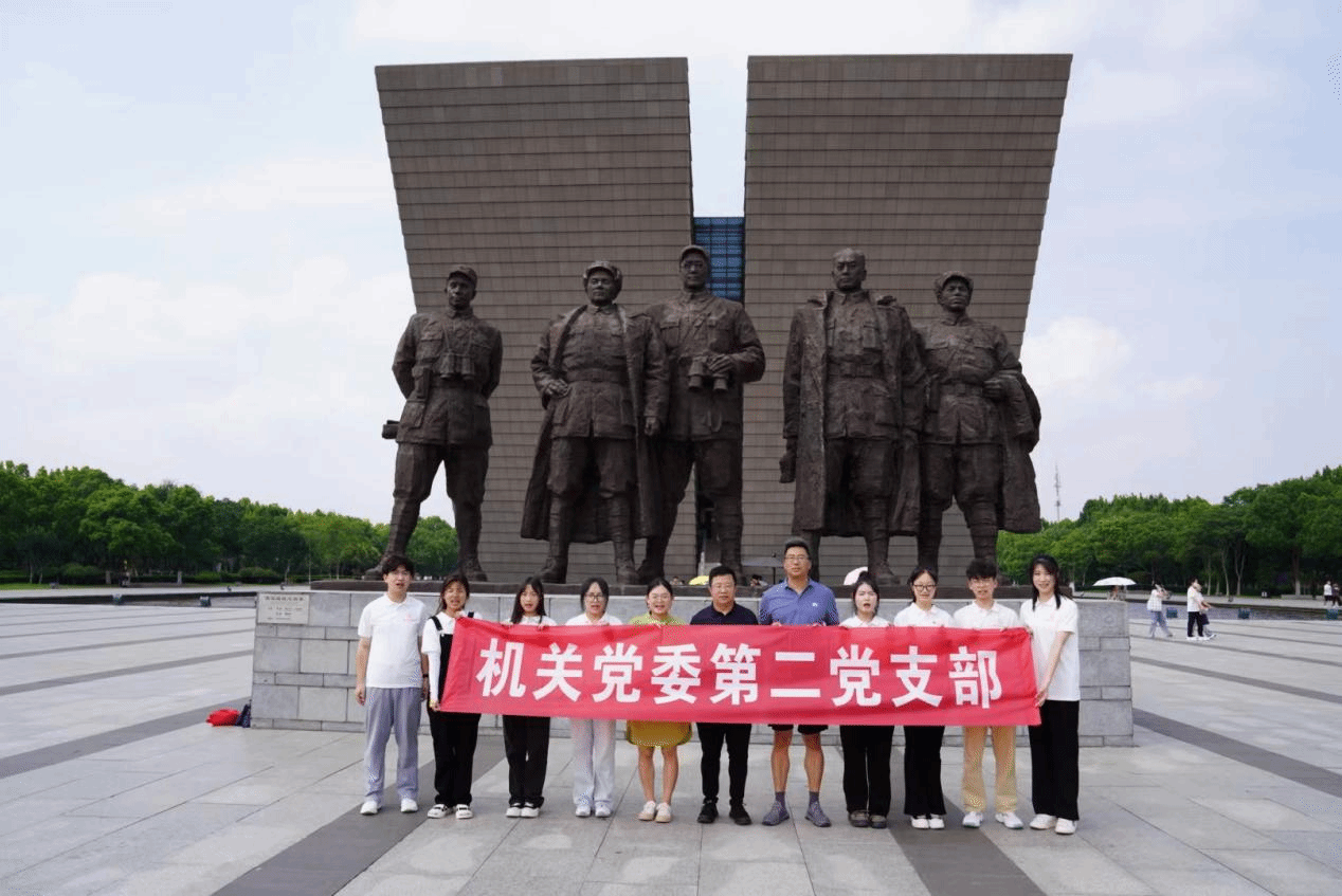 2023年8月26日,机关第二党支部部分成员来到渡江战役纪念馆。在高大的渡江战役总前委群雕像前,党员同志们列队整齐肃立,缅怀先烈。