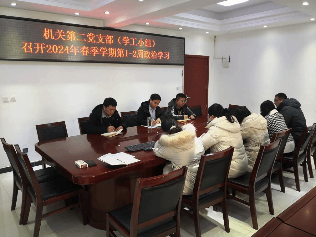 2024年3月4日上午,机关党委第二党支部全体党员在大学生服务中心106会议室开展1-2周政治学习活动。