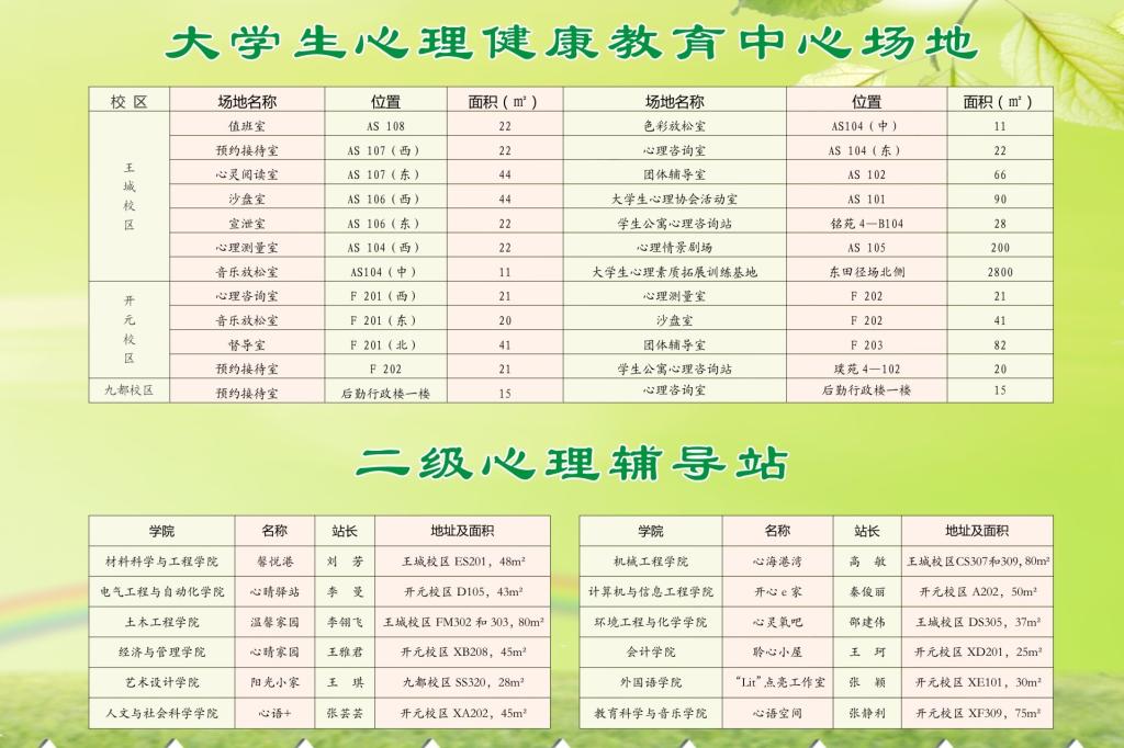 大学生心理健康教育中心与二级心理辅导站场地设施