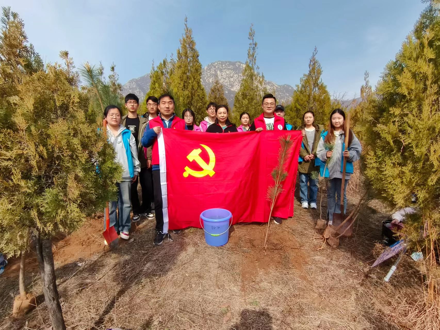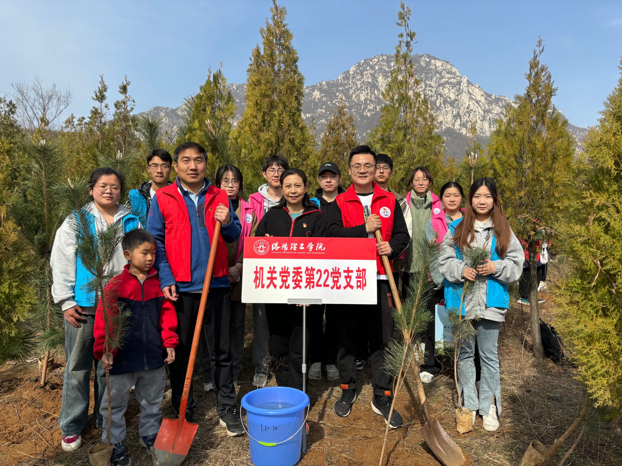 在此次义务植树活动中,机关党委第二十二党支部党员干部和郑州校友用实际行动为绿色生态增添一抹党旗红、留下一抹生态绿,充分展示了支部党员和校友们、同学们爱护环境、植树造林的良好风采。