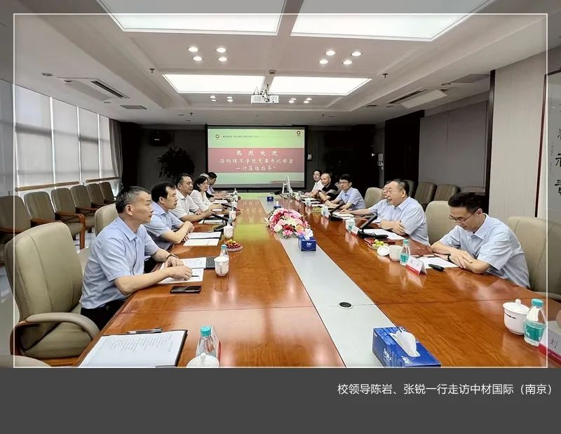 7月31日上午,校党委书记陈岩,校长张锐,校党委副书记、工会主席曾涛,副校长丁梧秀一行走访了中国中材国际工程股份有限公司(南京)(以下简称“中材国际(南京)”)。中材国际(南京)党委副书记、总经理牛延林,副总经理、工会主席赵美江,副总经理、宁锐董事长黄平,海螺环保总工程师王建礼等出席座谈交流会。