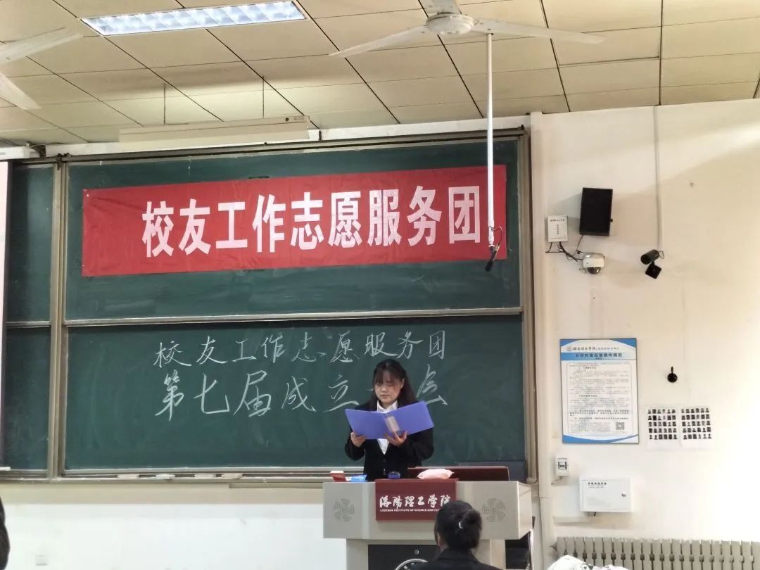 第六届校友工作志愿服务团主席魏珂做《第六届校友团工作报告》,苗超鹏老师宣读第七届校友团学生干部名单,付俊强老师为学生干部颁发聘书。曹炳旺校友、任鹏飞校友为“秉承洛理校训,迸发青春力量”演讲比赛中的获奖人员颁发荣誉证书。