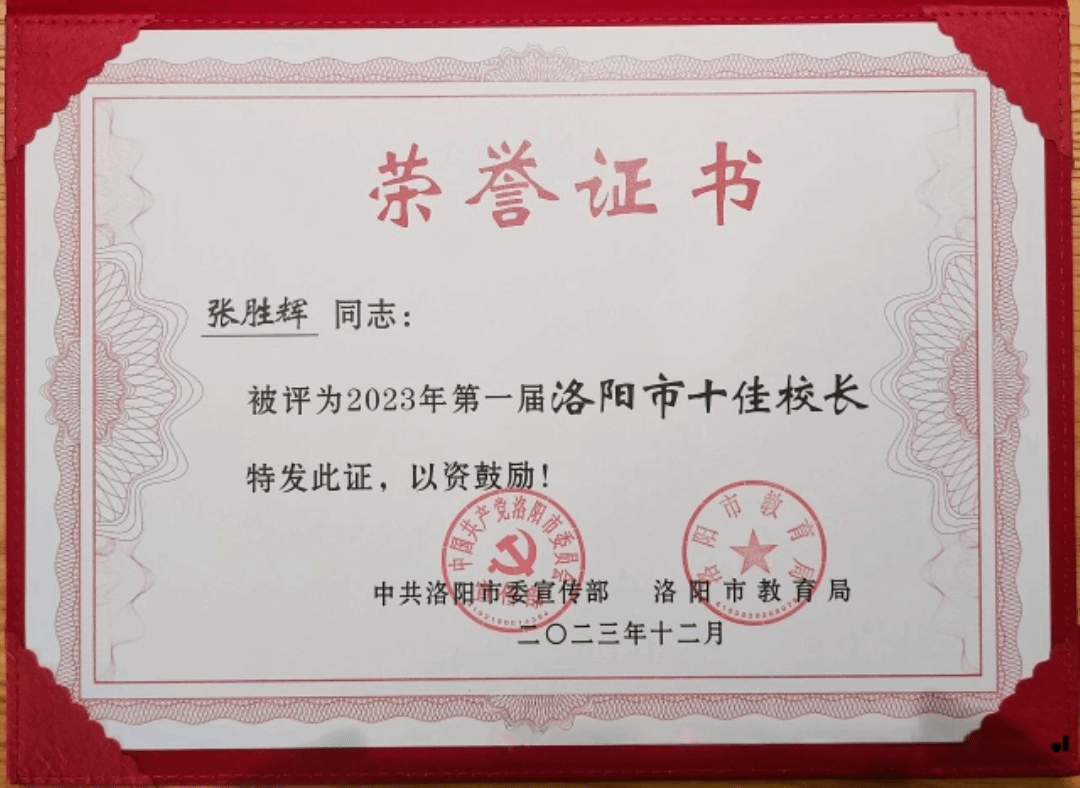 张胜辉,中共党员,中小学正高级教师职称,洛阳市第一届十佳校长。