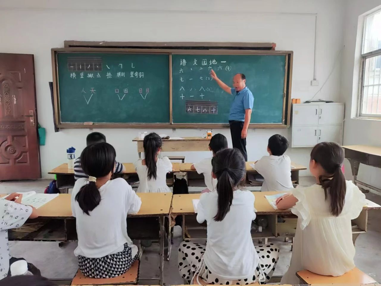 ,第一件事就是打开教室进入班级,做好当天的课堂准备,当孩子们都到教室后,他就开始指导早读、检查作业。