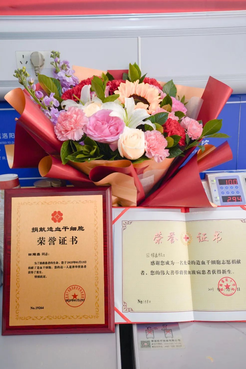 2020年夏天,田耀鑫报名加入了中国造血干细胞捐献者资料库(又称中华骨髓库)。“2024年11月4日,我突然接到洛阳市红十字会的电话,告知我跟外地一名血液病患者配型成功了。”田耀鑫说,挂断电话,他有点儿意外,更多的是激动,“成为造血干细胞捐献志愿者的那天开始,我就时刻准备着完成捐献,救治患者。”