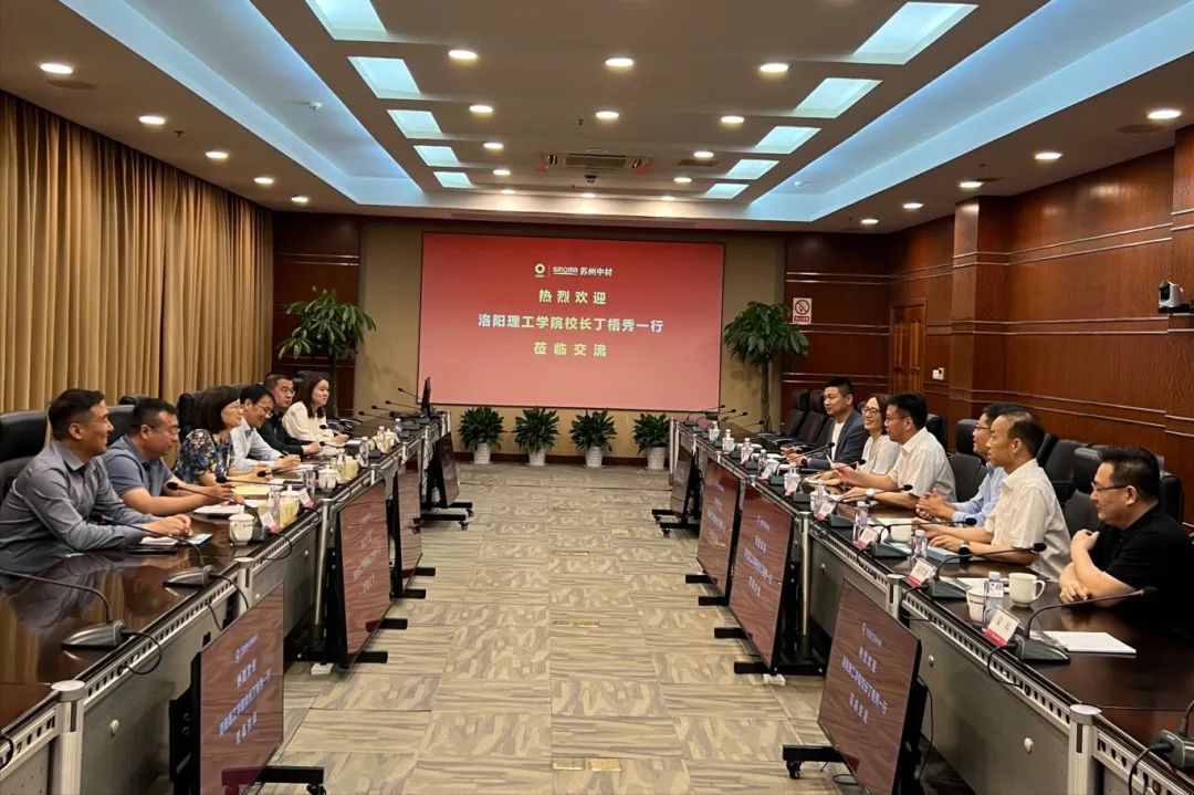 苏州中材总经济师刘永利对丁梧秀一行表示热烈欢迎,他介绍了公司的基本情况、“十四五”战略执行、服务集团“海外再造”、发展前景与人才需求等方面的情况。