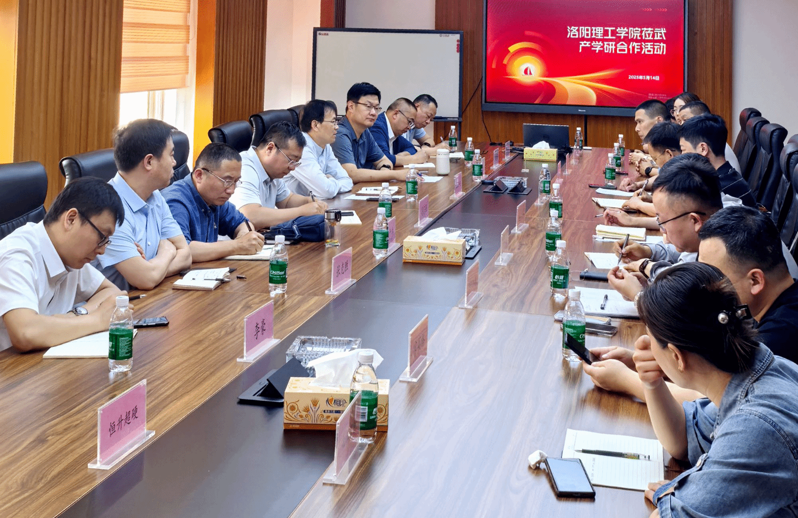 吴全新对上官林建一行表示欢迎,他介绍了武陟县的基本情况、325产业布局,希望以此次交流为契机,充分发挥校企双方各自优势,在关键技术协同攻关、产品升级、人才输送和科技成果转化等方面开展深度合作。