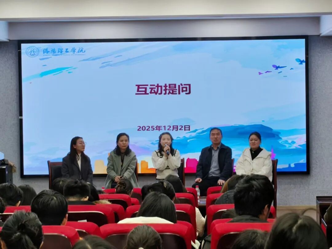 互动问答环节气氛热烈,学子们围绕专业选择、考研规划、职场适配等核心困惑踊跃提问。于燕枝、付俊强、黄宇飞、杜星瑞从校友资源运用、人才培养体系、职场实战技巧等多维度精准答疑,将理论指导与实践经验深度融合,为同学们驱散迷茫、明晰航向。
