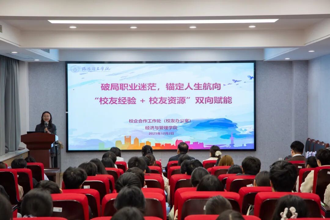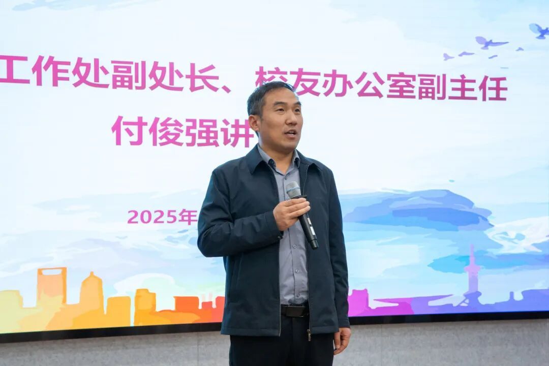 校友会“服务校友、服务母校、服务社会” 的核心使命与发展历程。他指出,校友会不仅是联结校友情感的纽带,更是整合校企资源、为学生提供实习推荐、就业指导、职业发展服务的“温暖港湾”,他鼓励同学们踏实积累、深耕学业、积极实践,做好长期规划,为未来发展蓄力。