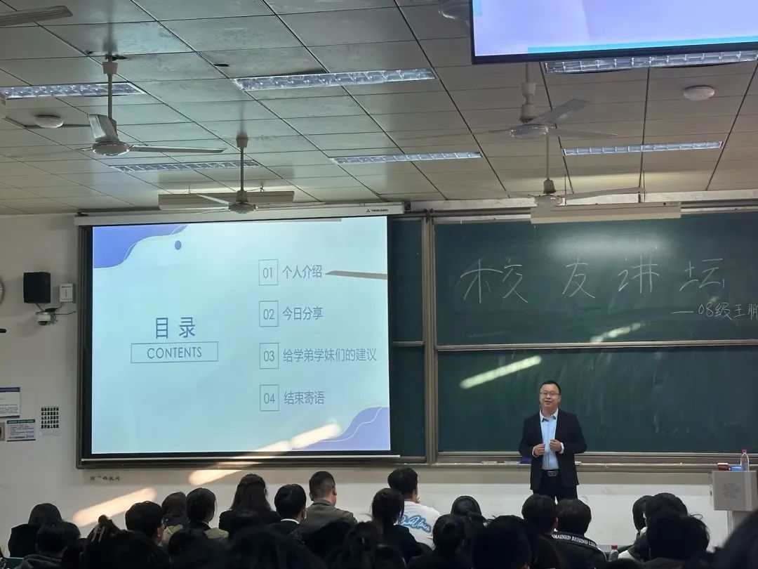 初冬扣临,暖阳依旧。11月23日下午,2008级土木工程专业校友王鹏真做客“校友讲坛”,在王城校区公共教学楼AE107做了题为《接受平凡,不甘平庸》的报告。
