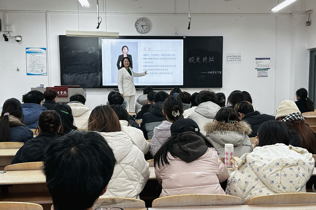 2005级机电一体化专业校友王绚做客“校友讲坛”,在王城校区公共教学楼AN202做了题为《努力的人生最出彩》的报告,向同学们分享她的大学生活、创业经历和人生感悟。