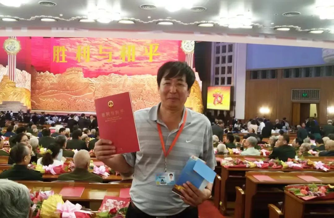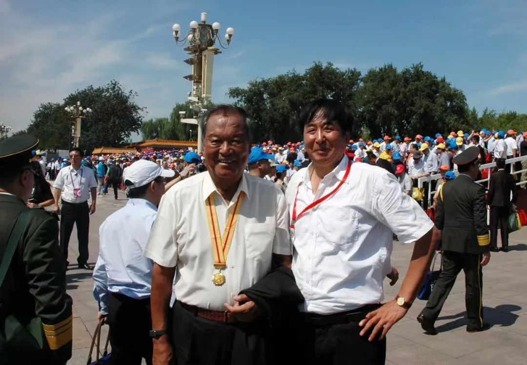 佩戴“中国人民抗日战争胜利70周年”纪念章的原国家建材局局长林汉雄等十名来自建材行业的抗日老战士受邀参加纪念大会,我有幸作为随员之一参加了此次活动,共同见证了这一历史时刻。