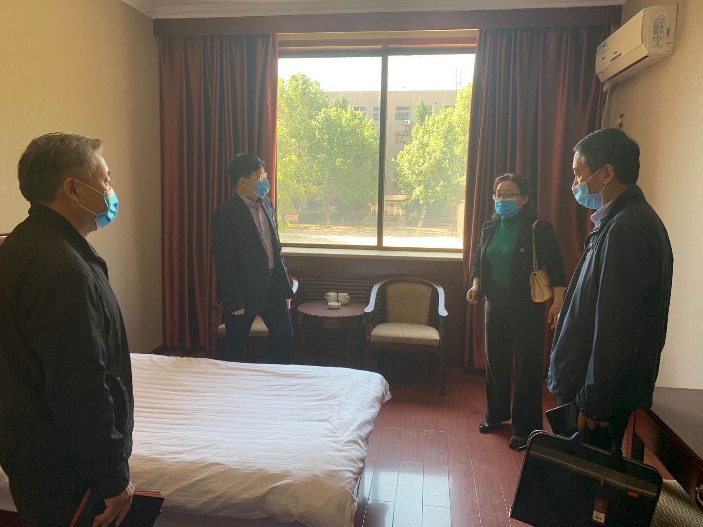 纪委书记刘楠到开元校区子衿宾馆疫情防控隔离留观区现场进行检查指导。纪委/监察专员办公室纪检监察室主任郭强、纪委/监察专员办公室综合室主任康怀云和校医院书记张姝陪同检查。