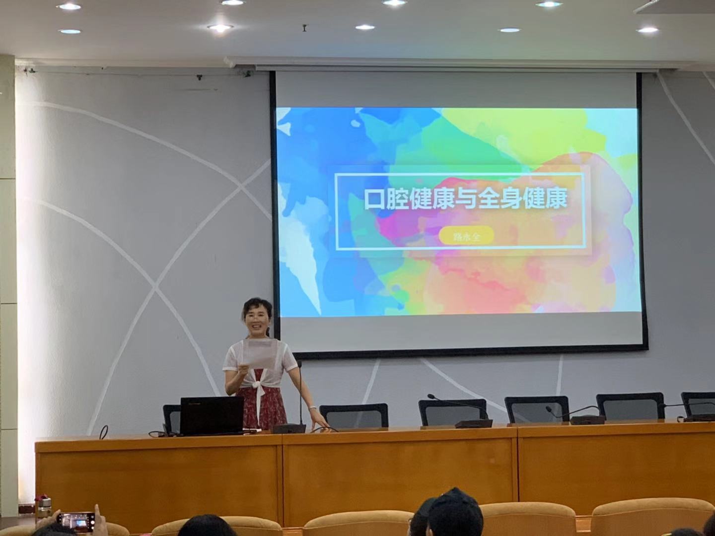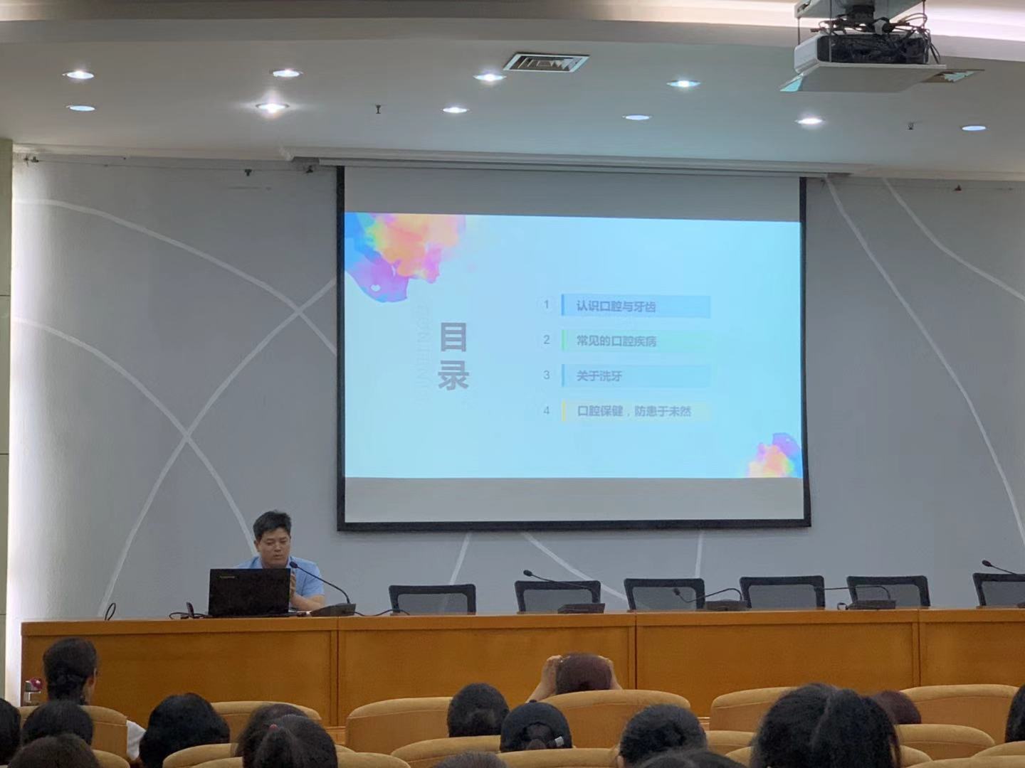 为进一步增强师生爱护牙齿意识,提高口腔保健能力和水平,2019年9月9日(周一)下午15:00校医院和校工会特邀友好小白兔口腔医院专家路永全院长为美高梅娱乐场 师生举行了一场口腔健康知识讲座。路老师从“认识口腔和牙齿;常见的口腔疾病;关于洗牙;口腔保健,防患于未然”等四个方面为师生们深入浅出讲解了口腔卫生的相关知识,受到现场师生的一致好评。讲座现场气氛热烈,老师同学们积极参与互动。