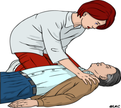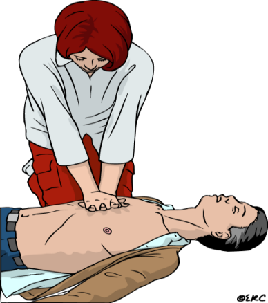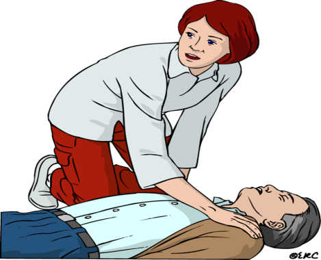 (1)掌根至于两乳头连线中点,胸骨下半段;双手重叠,互锁手指;跪于患者一侧,利用上身重力垂直向下按压,做30次胸外按压后,做2次口对口呼吸,为一个循环,总共做5个循环后暂停10秒对患者进行复苏情况评估,如果没有复苏迹象,继续进行下一个循环的心肺复苏,直到生命体征恢复或120车到来为止。