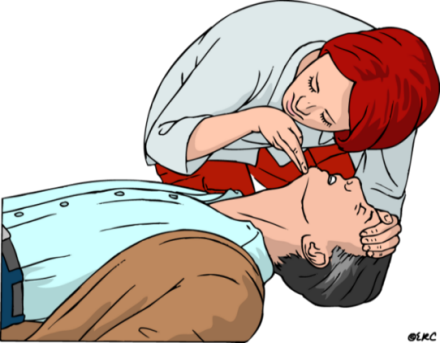 施救者把患者头偏向一侧,看其口腔是否有异物,如果有异物,要及时清理,以防患者误吸,致使其气道堵塞而有生命危险。确保患者呼吸道无异物后,捏住患者鼻子,吸气,然后口对口吹气,使患者胸部隆起,1秒钟,胸部回落。连续做两次。