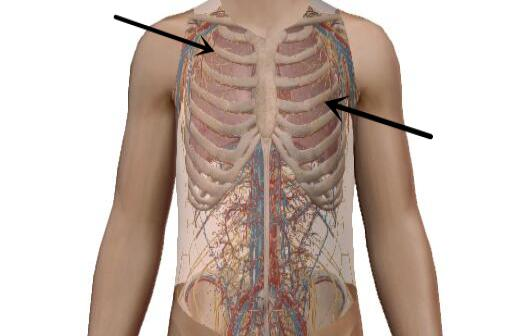 1.“开—贴—电”:一个贴片贴在左侧乳头外侧的上边缘距离腋窝大约7厘米处(4、5肋间心尖部),另一贴片贴在右侧锁骨右缘的第二个肋骨上(心底部)。