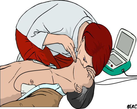 1. 当我们目击一个患者发生“无接触倒地”时,先检查反应