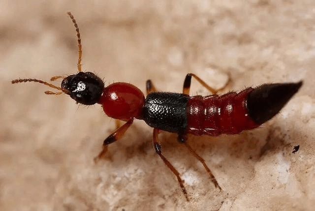 隐翅虫不咬人,人们患隐翅虫皮炎是因为皮肤接触到了隐翅虫体内的强酸性毒液所致。