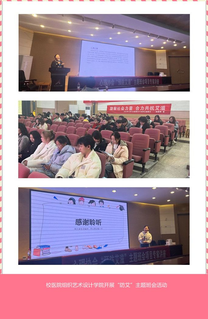为进一步宣传艾滋病预防知识,帮助同学正确认知艾滋病,增加自我防护意识和社会责任感,在第36个“世界艾滋病日”即将到来之际,围绕我国今年12月1日“世界艾滋病日”的主题“凝聚社会力量,合力共抗艾滋”,于2023年11月16日,校医院组织并邀请洛阳市疾病控制中心专家,在九都校区艺术设计美高梅娱乐场
