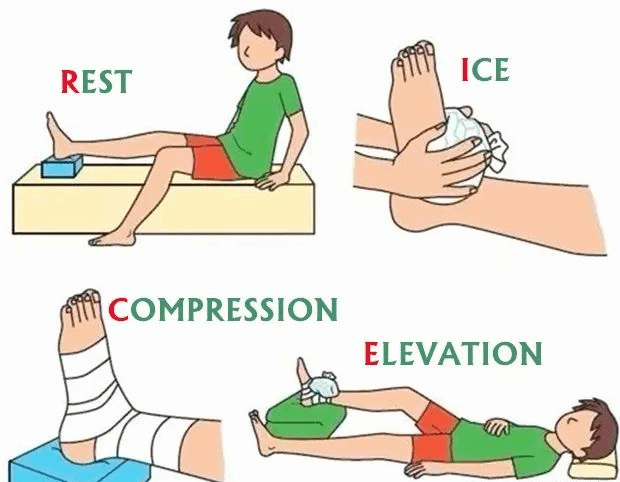 Rest(休息):制动,让受伤部位静止,减轻组织渗出、肿胀。