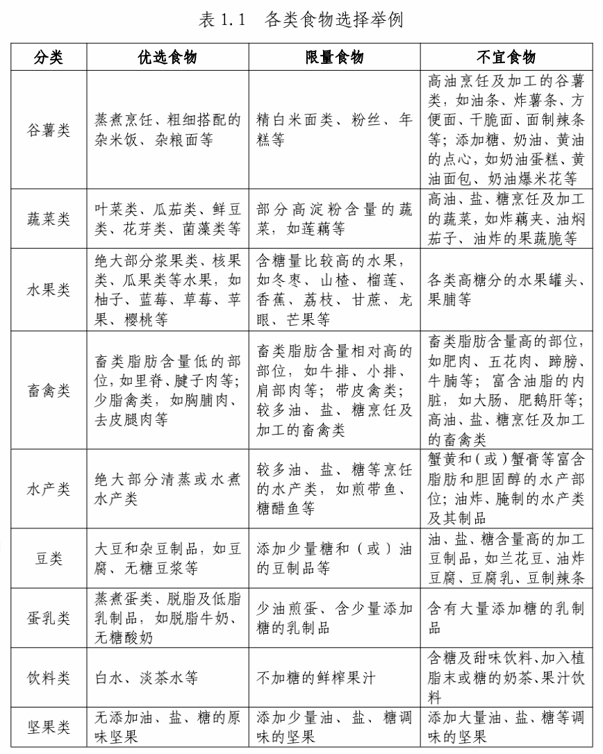 鼓励主食以全谷物为主,适当增加粗粮并减少精白米面摄入;保障足量的新鲜蔬果摄入,但要减少高糖水果及高淀粉含量蔬菜的摄入;优先选择脂肪含量低的食材,如瘦肉、去皮鸡胸肉、鱼虾等;优先选择低脂或脱脂奶类。