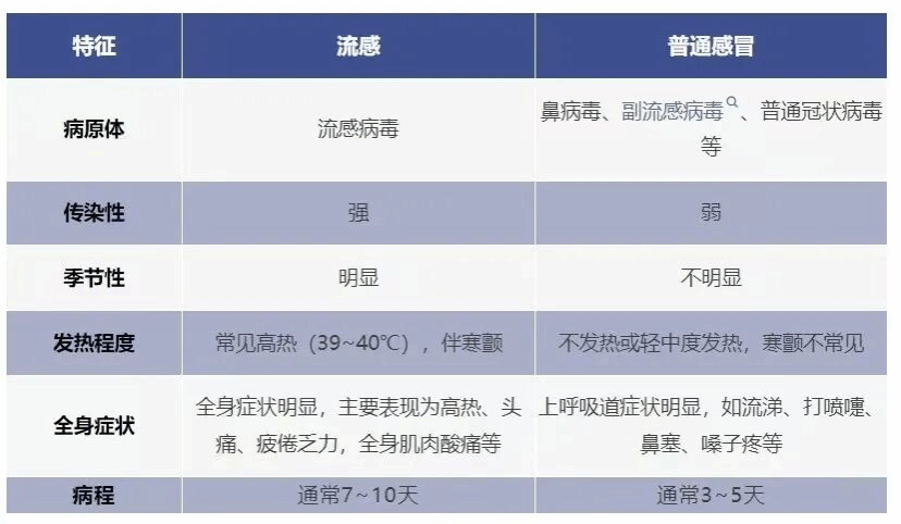 流感和普通感冒虽然都是呼吸道疾病,但两者是完全不同的。下表列出了流感和普通感冒区别:
