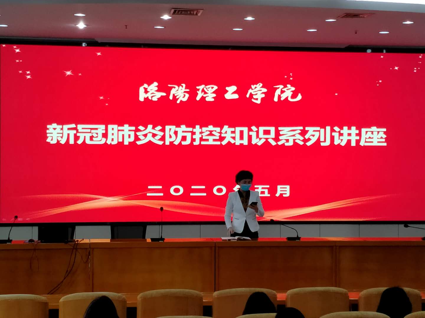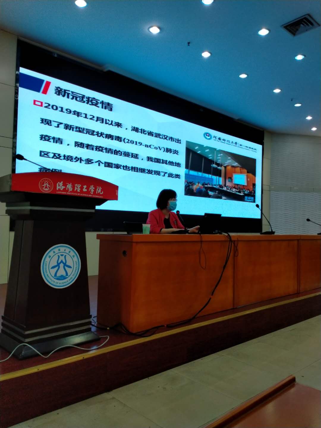 开学前及开学后的新冠疫情医疗防控工作,坚决打赢疫情防控阻击战。5月8日下午15:00—16:30,在王城校区行政办公楼二楼报告厅,校医院在党委宣传部、教育处和党政办的支持下邀请了河南科技大学附属医院急诊科主任郏建臣教授和感染管理科副科长呼秀峰主任为校医院全体医务工作者和相关部门代表做了题为《新型冠状病毒肺炎的早期识别和防治》和《新冠肺炎防控及个人防护》的精彩讲座。