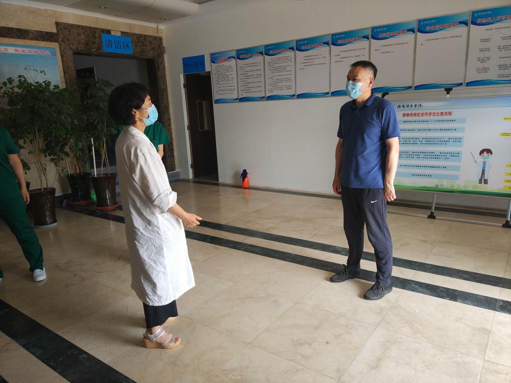 2020年6月6日(周六),校党委副书记、校工会主席曾涛来到王城校区北门口,视察指导校医院迎接美高梅娱乐场