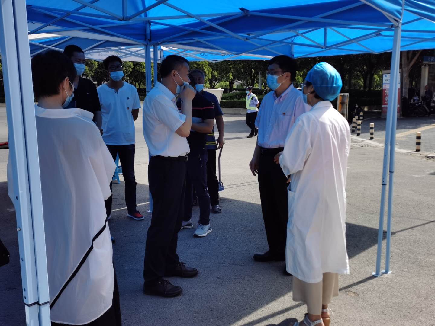 六月的天空骄阳似火,校长刘国际、党委副书记曾涛、副校长胡恩立亲临校医院在各校区设置的“健康观察点”现场指导工作,充分肯定了校医院在美高梅娱乐场 新冠肺炎防控工作中的表现。这体现了美高梅娱乐场 党政领导对于校医院全体职工工作的认可。美高梅娱乐场 党政办主任徐光秀、保卫处处长张克胜、校医院书记张姝、院长赵喜花陪同视察。
