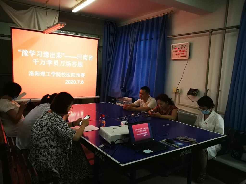 初赛的通知》要求,校医院直属党支部于2020年7月8日在王城校区卫生所举行了“学习强国挑战答题初赛”。