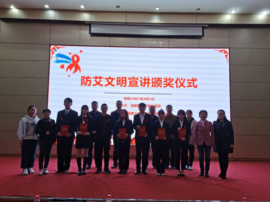 开元校区图书馆报告厅成功举行。出席活动的领导和老师:洛阳市疾控中心传控所副所长麻小龙、宣传科科长梁秀梅、传控所医师李亚静和李永超,校学生处丁国强副处长、校团委孟展副书记、校宣传部郭春林老师、校医院院长赵喜花、办公室黄小荣和李颖雪。