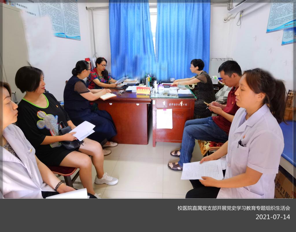 7月14日,在校医院院长办公室,直属党支部召开了“党史学习教育”专题组织生活会。