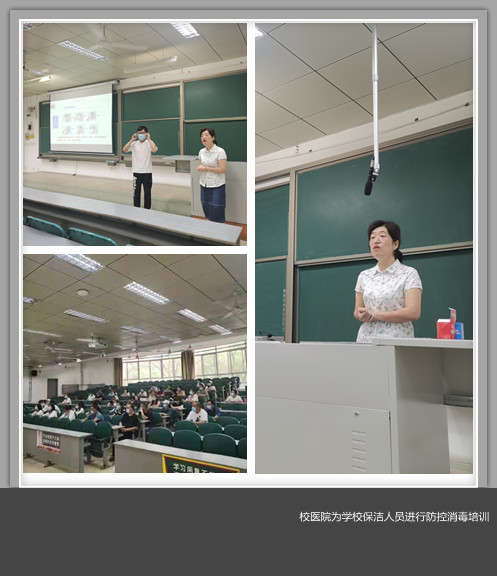 教室管理中心、公寓中心、绿化队等后勤部门工作人员进行了线下专场培训,主要内容是防控消毒知识和操作方法。