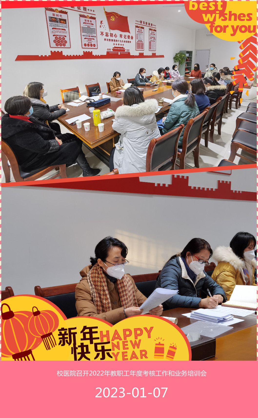 2022年教职工年度考核工作的通知》要求,1月7日下午,校医院召开2022年教职工年度考核工作和业务培训会。会议由校医院直属党支部书记王进平主持。