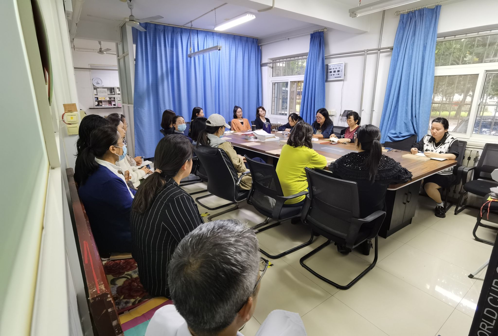 2023年9月26日上午,校医院全体医务工作人员,在王城校区卫生所,召开了迎中秋、国庆双节安全工作和双节值班工作部署会。会议由王进平书记主持,首先学习了习近平总书记关于安全工作的重要讲话,随后,赵喜花院长传达了省教育厅和美高梅娱乐场