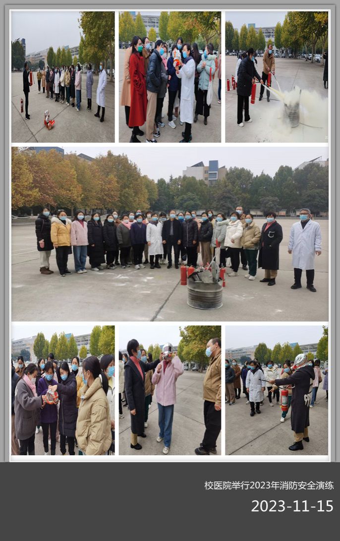 2023年11月15日下午,为增强医务人员消防安全意识,提高自救防范能力,做到在发生火警火灾时临危不乱,及时使用消防器材消灭初期火灾,并有序、迅速地按照消防逃生路线安全疏散人员,确保生命安全和工作场所的消防安全,校医院组织全体职工在王城校区镜月广场开展了一次消防安全演练。